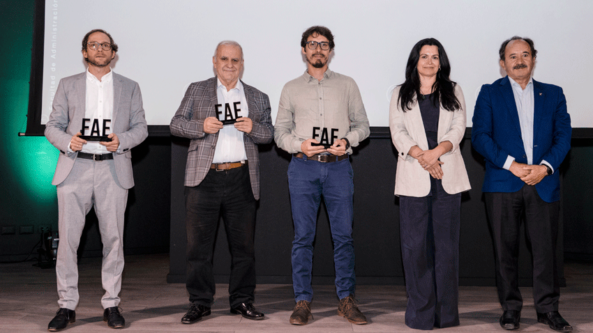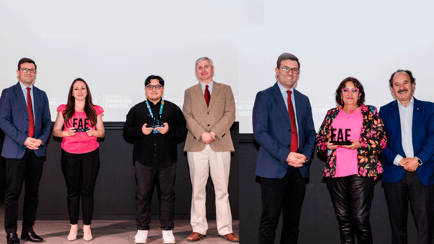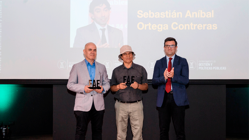 A nivel institucional, la facultad distinguió al funcionariado destacado 2025, reconociendo a Freddy Vásquez Sepúlveda como funcionario administrativo destacado junto a Ciro Gajardo Cartes, a Evangelina Ramírez Seguel del Departamento de Administración en la categoría de secretaría, y a Nicole Loyola Laborié, jefa de Personal FAE, como profesional destacada 2025. En la categoría de trayectoria, se premió a Patricia Sáez San Martín por su aporte sostenido al Departamento de Economía y al Departamento de Contabilidad y Auditoría. También fueron reconocidos los y las docentes destacadas por departamento: el Dr. Sergio López Bohle (Administración), el Mg. Braulio Soto Riquelme (Contabilidad y Auditoría), el Dr. Federico Droller (Economía) y el Mg. Cristóbal Madrid Figueroa (Gestión y Políticas Públicas). Finalmente, se otorgó el reconocimiento al Investigador Destacado 2025 al Dr. Héctor Ponce Arias, por su contribución al desarrollo de nuevo conocimiento y al fortalecimiento del ecosistema científico de la facultad.