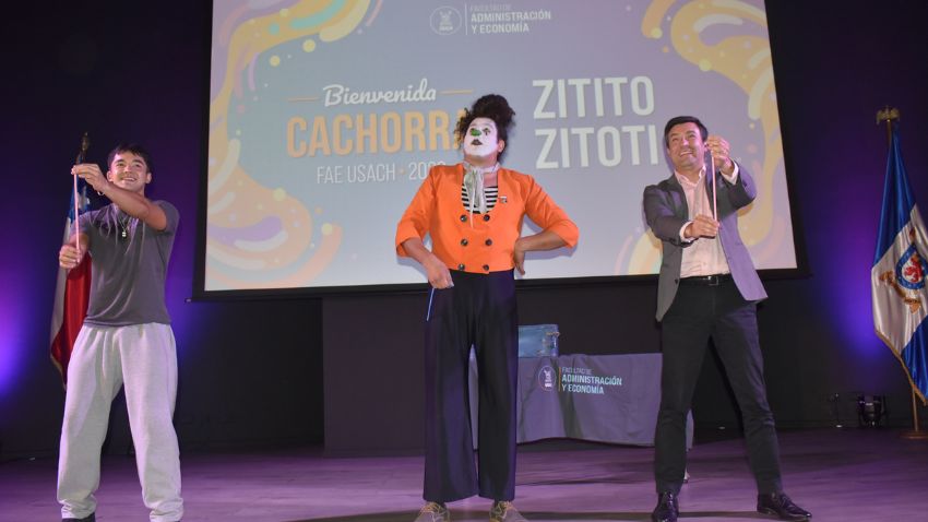 La Bienvenida Cachorra 2026 convirtió el auditorio de la FAE Usach en el primer gran punto de encuentro para las y los estudiantes que este año comenzaron su trayectoria en la educación superior. El recinto se vio colmado por jóvenes de Administración Pública, Contador Público y Auditor e Ingeniería Comercial, quienes llegaron para conocer de cerca la facultad, sus apoyos y el entorno que les acompañará en esta nueva etapa.